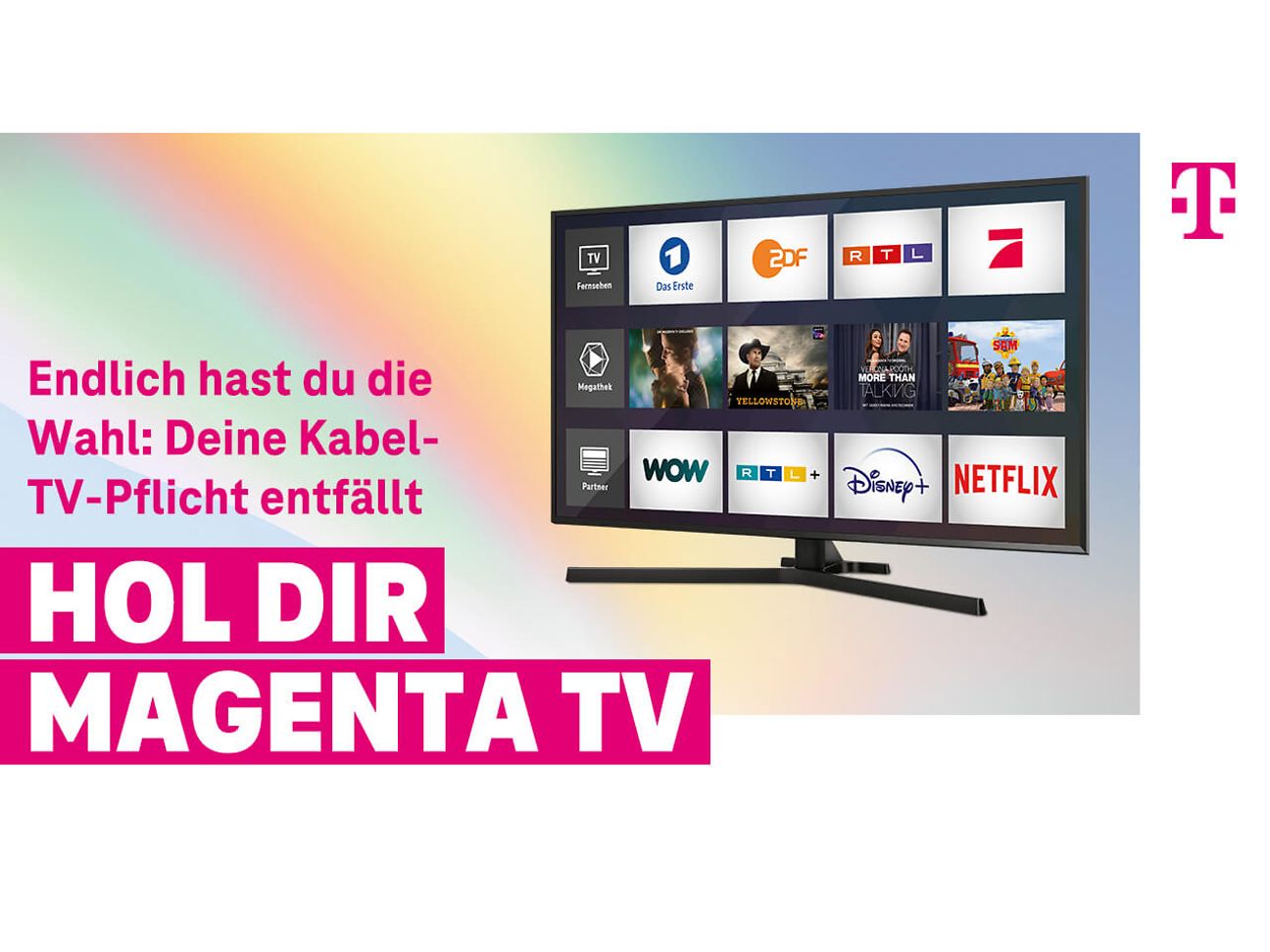 Ab dem 1. Juli 2024 wird Fernsehen für Mieter*innen in Deutschland attraktiver, flexibler und in vielen Fällen auch günstiger. Denn dann fällt die Pflicht, die Kosten für Kabel-TV über die Mietnebenkosten bezahlen zu müssen, weg und sie können selbst entscheiden, welchen TV-Anbieter sie nutzen möchten. Eine gute Gelegenheit, sich schon jetzt über attraktive Alternativen zu informieren. Und der frühzeitige Umstieg lohnt sich – schon jetzt können Mieter*innen MagentaTV mit allen Vorzügen genießen und zahlen frühestens ab Juli 2024.
