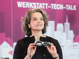 Claudia Nemat, Vorstand für Technologie und Innovation bei der Telekom, zeigt beim „Magenta Werkstatt-Talk“ leistungsstarke Netze und digitale Anwendungen.