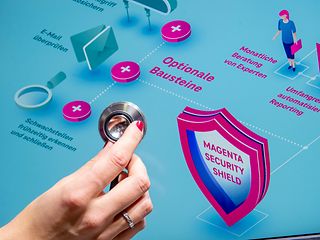 Das Cyber-Security-Paket besteht aus mehreren Bausteinen. Dazu zählt etwa der Magenta Security Shield. Dieser Dienst schützt Nutzer, Daten sowie die IT und sichert die bei Hackern beliebtesten Einfallstore ab: Endpunkte wie Server und Clients, E-Mail, Netzwerke und das Internet. Auch medizinische Geräte und deren Kommunikation untereinander werden überwacht. Security-Expertinnen und -Experten der Telekom erkennen frühzeitig verdächtiges Verhalten und leiten Gegenmaßnahmen ein.