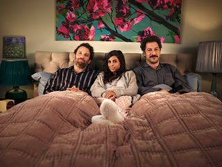 Christian Ulmen, Collien Ulmen-Fernandes und Fahri Yardim (v.l.) schauen MagentaTV.