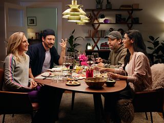 Auch der zweite Spot folgt diesem Schema. Christian und Fahri sitzen mit charmanter Begleitung im Esszimmer. Die redselige Runde unterhält sich über das umfassende WM-Angebot von MagentaTV. Plötzlich ertönt nebenan lautstarker Torjubel. Verwunderte Blicke treffen sich. Der prominente Fußballbesuch blockiert wieder einmal das Wohnzimmer von Familie Ulmen – dank MagentaTV. Denn mehr WM geht nicht.