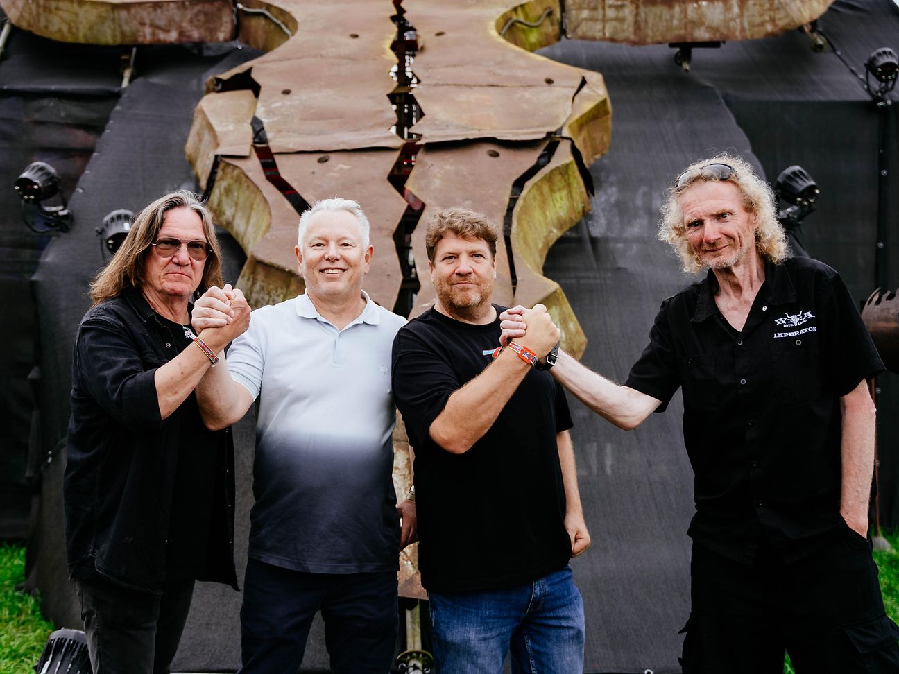 Freuen sich über die Partnerschaft (v.l.n.r.): Thomas Jensen (Wacken-Mitgründer), Lars-Oliver Voigt (Geschäftsführer Live Nation), Telekom TV-Chef Arnim Butzen, Holger Hübner (Wacken-Mitgründer). © Guillermo Falavigna/ Telekom