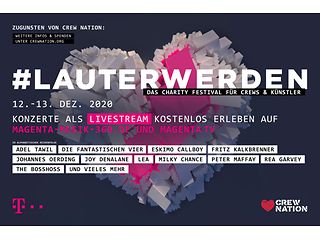 Handeln und helfen: Deutsche Top-Musiker wie Die Fantastischen Vier, Peter Maffay, Joy Denalane und Fritz Kalkbrenner treten am 12. und 13. Dezember beim digitalen Charity-Festival #lauterwerden auf. Ihr Ziel: Menschen in der Live-Veranstaltungsbranche zu unterstützen, die durch die Corona-Pandemie in existenzielle Not geraten sind. Die Telekom ist Partner des von Live Nation initiierten Events und spendet zusätzlich einen Betrag von 250.000 Euro. Fans und Zuschauer können sich ebenfalls beteiligen.