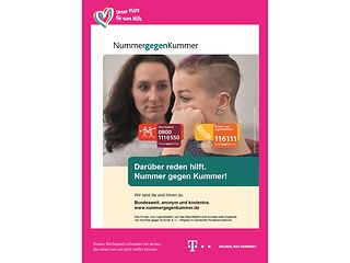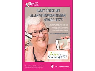 Die akuelle Corona-Situation fordert uns alle heraus. Viele Menschen fühlen sich in dieser Phase der Krise überfordert und hoffnungslos. Die Deutsche Telekom bietet erneut Unterstützung. Am 29. April 2021 startet sie die Initiative „Unser Platz für Eure Hilfe“. Eine Woche lang stellt das Unternehmen seine nationalen Werbeplätze fünf gemeinnützigen Organisationen zur Verfügung. Aktion Deutschland Hilft, Crew Nation, Labdoo, Nummer gegen Kummer und Wege aus der Einsamkeit erhalten so eine große öffentliche Aufmerksamkeit. Die Organisationen verzeichnen in der Pandemie einen deutlich steigenden Beratungsbedarf. Gerade jetzt profitieren die Menschen von den Hilfsangeboten.