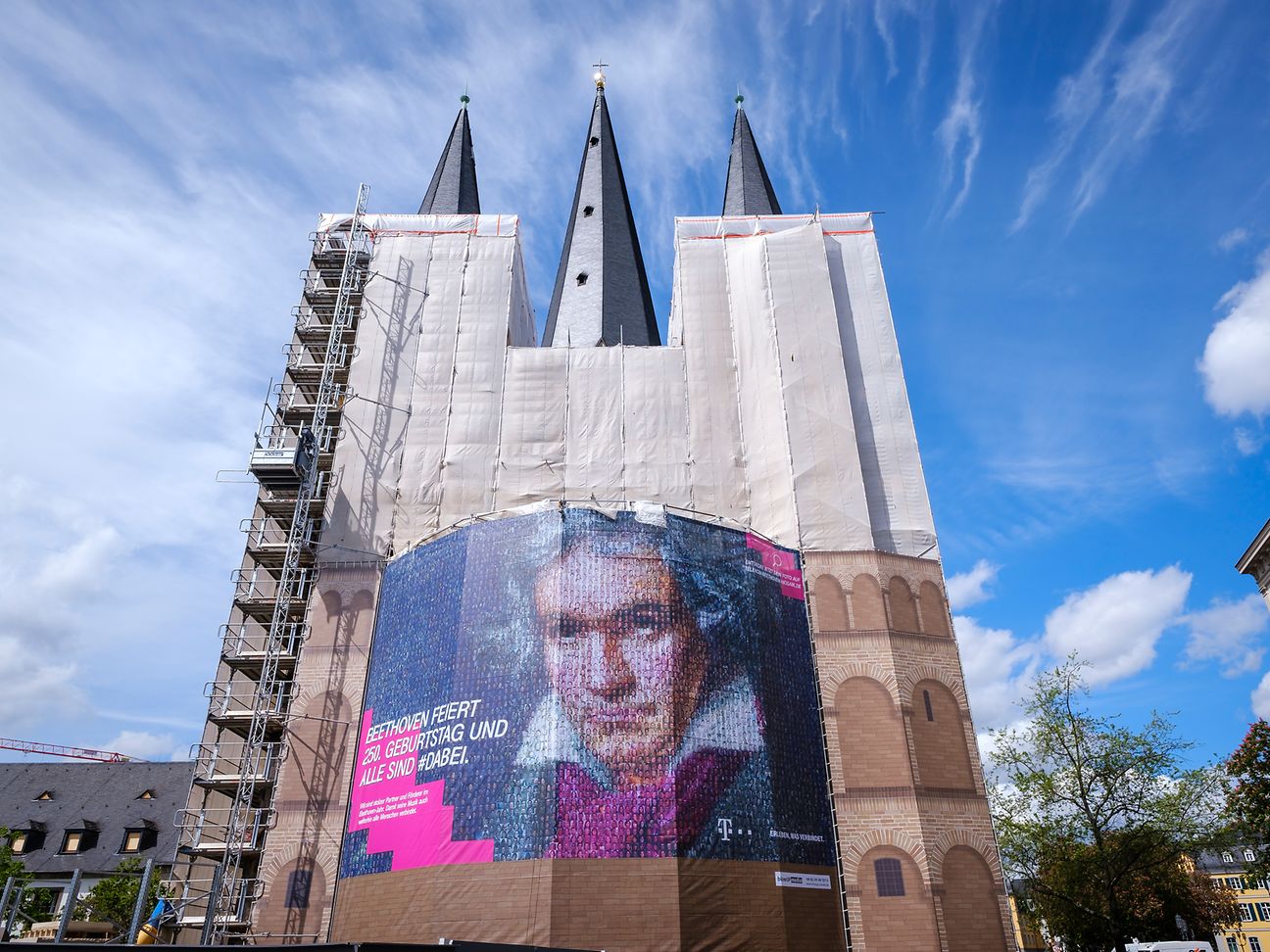 Am 30. April enthüllte die Deutsche Telekom das große Beethoven-Mosaik, welches sich aus vielen einzelnen Porträts von Beethoven-Fans aus der ganzen Welt zusammensetzt. Seit dem Start der Aktion Anfang März erreichten die Telekom Selfies von allen Kontinenten, die nun zum Kunstwerk zusammengefügt und der Öffentlichkeit präsentiert werden. Das Mosaik ist am Bonner Münster und demnächst auch am Parkhaus der Telekom Zentrale zu sehen. Auch im Internet kann man es sich als digitales Denkmal unter www.telekom-beethoven-mosaik.de anschauen.