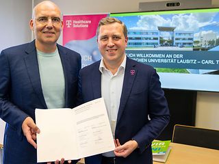 Wichtige Grundlage für die Modellregion Gesundheit Lausitz: Die Telekom und die neue Medizinische Universität Lausitz – Carl Thiem (MUL-CT) haben eine langfristige Innovationspartnerschaft geschlossen. Ziel ist es, die Digitalisierung zu nutzen, um im Klinikum und der Region die Versorgung der Bürger*innen zu verbessern. In einem ersten Schritt wird eine moderne und leistungsstarke Hybrid-IT-Infrastruktur erstellt.