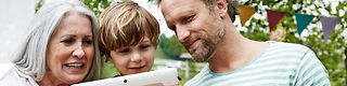 Großmutter, Vater und Sohn am Tablet-Computer.