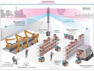 Industrial companies have to improve the flexibility, adaptability, and efficiency of their business processes continuously. In today's business world, digital and automated workflows are an essential foundation for flexible production processes and for beating the international competition. Connecting production sites wirelessly by the expansion of special mobile networks, so-called Campus Networks, is a key to the digitalization of business. It makes it possible to deliver predictive maintenance of machines, or necessary changes in the production process can be made online, to name some examples.