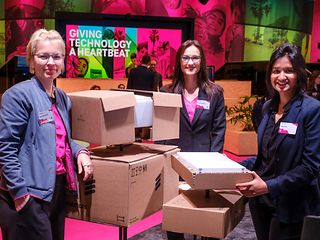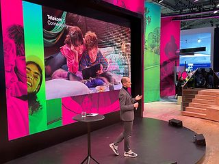 Sustainable packaging, road safety, easy collaboration in companies and rules for AI ... Trade fair Wednesday also brings many examples of how Deutsche Telekom wants to improve people's lives. Today's photo blog also spotlights more of those who are on hand at the trade fair stand every day from 9 a.m. to 6 p.m. for the many interested visitors.
