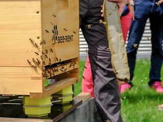 Smart beehives on the campus at Deutsche Telekom's Bonn headquarters.