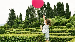 Girl holding flowers to her eyes.