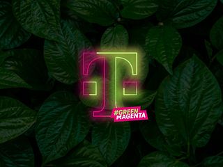 The silhouette of the new T, half magenta-colored, half green, with lettering #GREENMAGENTA