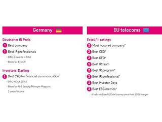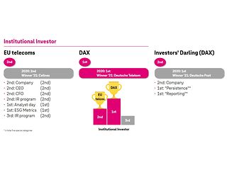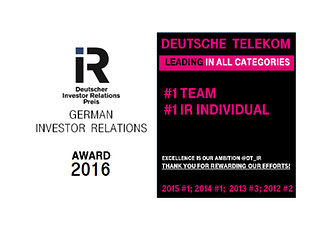 • First time ever: Deutsche Telekom is the first company ever to win both awards for ‘Leading company for Investor Relations’ and for ‘Leading Investor Relations Professional’ at the same time.