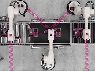 The 5G standalone campus network of the Werner-von-Siemens Centre operates separately from Telekom's public mobile network. The entire infrastructure, from the antennas and active system technology to the core network, comes from Ericsson. Based on this network, a fleet of autonomously driving and operating robots works on various use cases at the centre. The 5G standalone network is often sufficient to control the robots. The 5G millimetre waves come into play when the requirements for communication and data transmission increase, and therefore also when solving more complex tasks. For example, in a computer vision application: the robot picks up an order and checks whether the ordered goods are complete on the way to the next destination. If there is a discrepancy, it immediately reorders the goods.