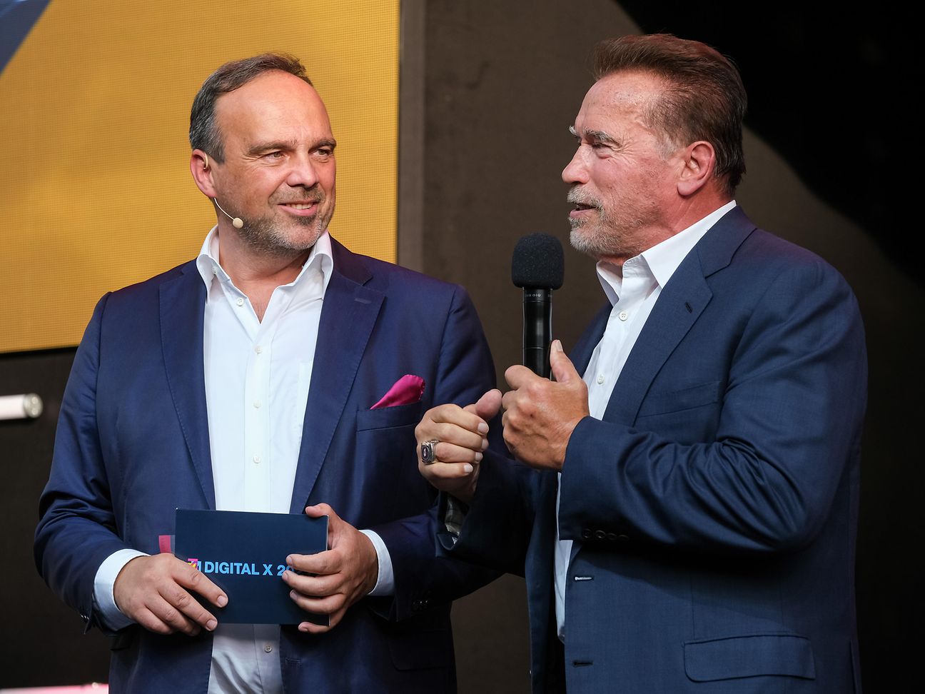 Digital X 2021 - Hagen Rickmann und Arnold Schwarzenegger are in one mind: Digitization makes all the difference.