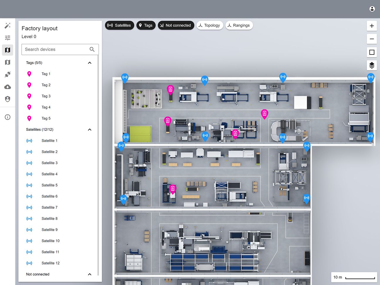 Permanently installed receivers, also known as satellites, communicate with mobile transmitters or tags. © Copyright: TRUMPF GmbH und Co. KG Editing: Deutsche Telekom AG
