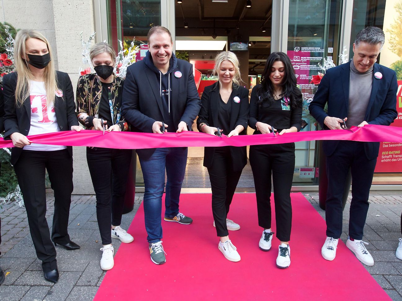 Grand reopening of the Cologne flagship store, including Bijan Esfahani - Head of Telekom Shops (2nd from right), Büsra Zengin - Store Manager (3rd from right) and Karin Kranz - Head of Retail Design (6th from right).